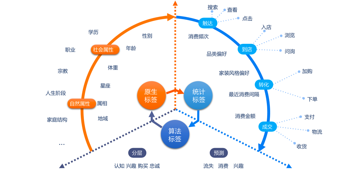 CDP(CDP营销中台、CDP全渠道会员管理)赋予企业深度应用数据的能力,获取全渠道数据后清洗与整合,标签化管理,提供精细化运营。