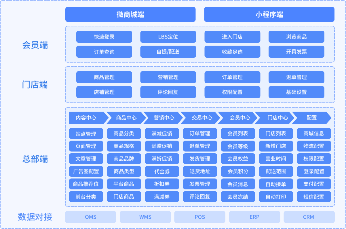 支持单网店和LBS多网店两种模式,可由总部操盘品牌总店线上商城运营,